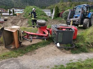 Heute Nachmittag wurde die Feuerwehr Roppen um 15:22 Uhr aufgrund einer eingeklemmten Person alarmiert. Auf einer Baustelle im Ortsteil Trankhütte kippte ein Hoftrac an einer abschüssigen Stelle um und blieb seitlich liegen. Der Fahrer wurde dabei im Beinbereich eingeklemmt.