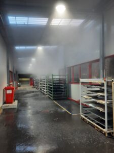 An der betroffenen Linie wurden durch die Betriebsmitarbeiter die Sprinklerköpfe getauscht und anschließend verschlossen. Abschließend konnte die Anlage wieder befüllt und in Betrieb genommen werden
